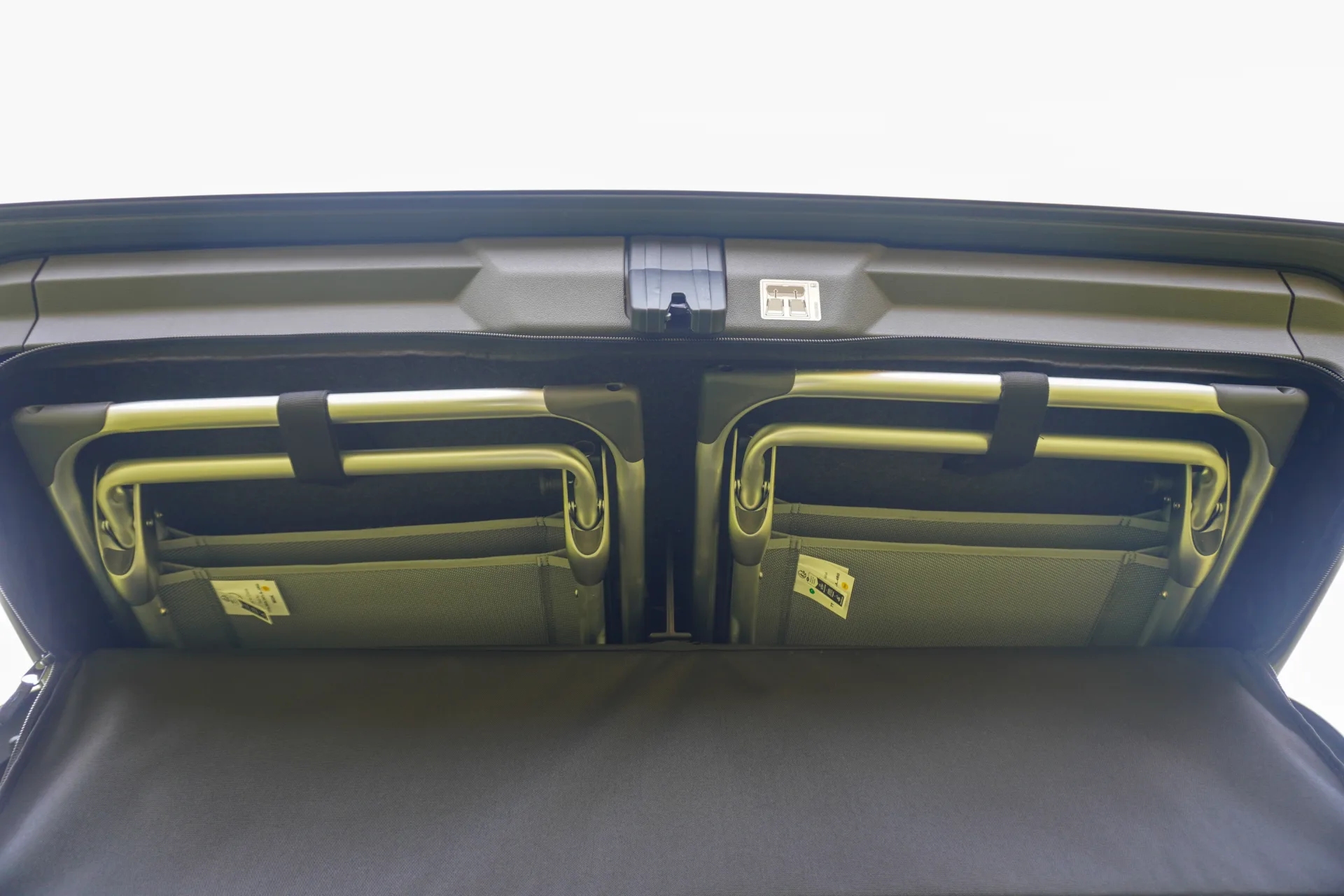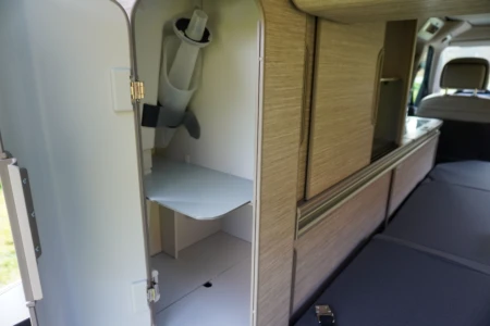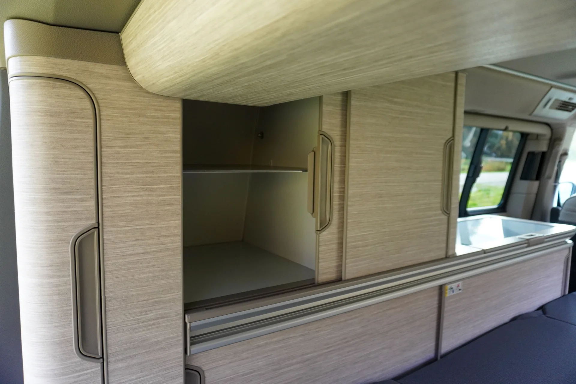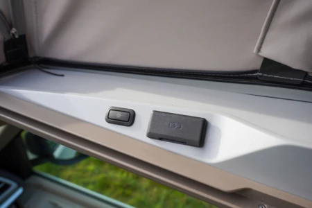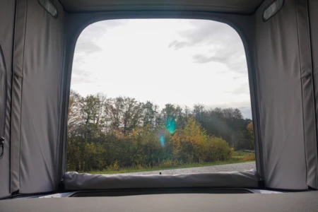 Het elektrische hefdak creëert extra ruimte, een heerlijk slaapgedeelte bovenin en een open gevoel in het interieur. Dankzij de grote ramen en doordachte indeling voelt de camper altijd ruim en licht aan.