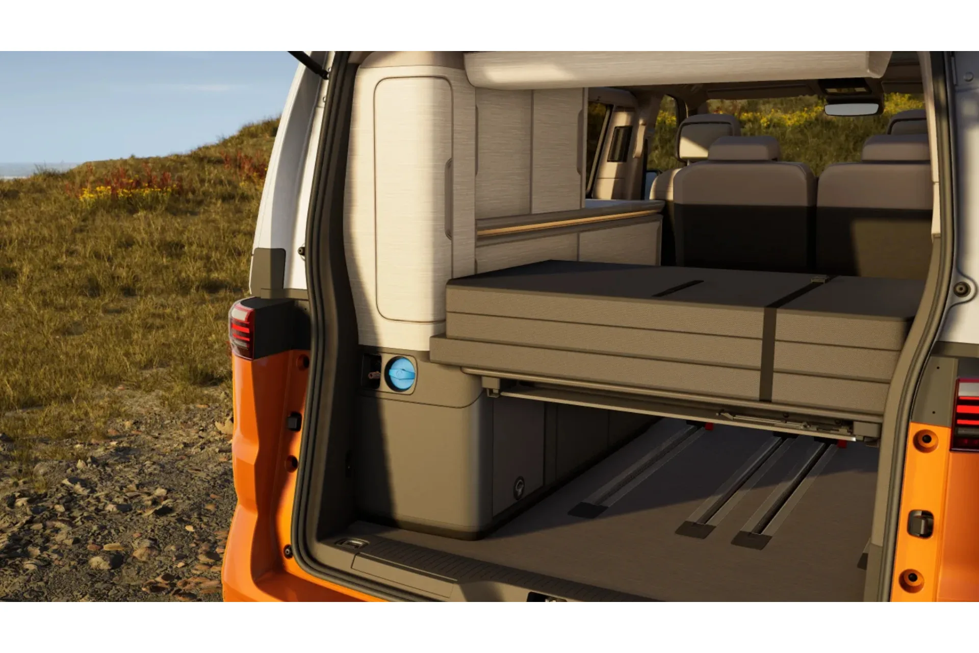Deze Volkswagen California Ocean laat zien dat comfort en karakter prima samengaan. De ingetogen Mono Silver basis krijgt door het Energetic Orange dak een uitgesproken signatuur. Dit is geen California die zich verstopt. Dit is een Ocean voor mensen die bewust kiezen voor vrijheid, maar daar ook persoonlijkheid aan willen geven.