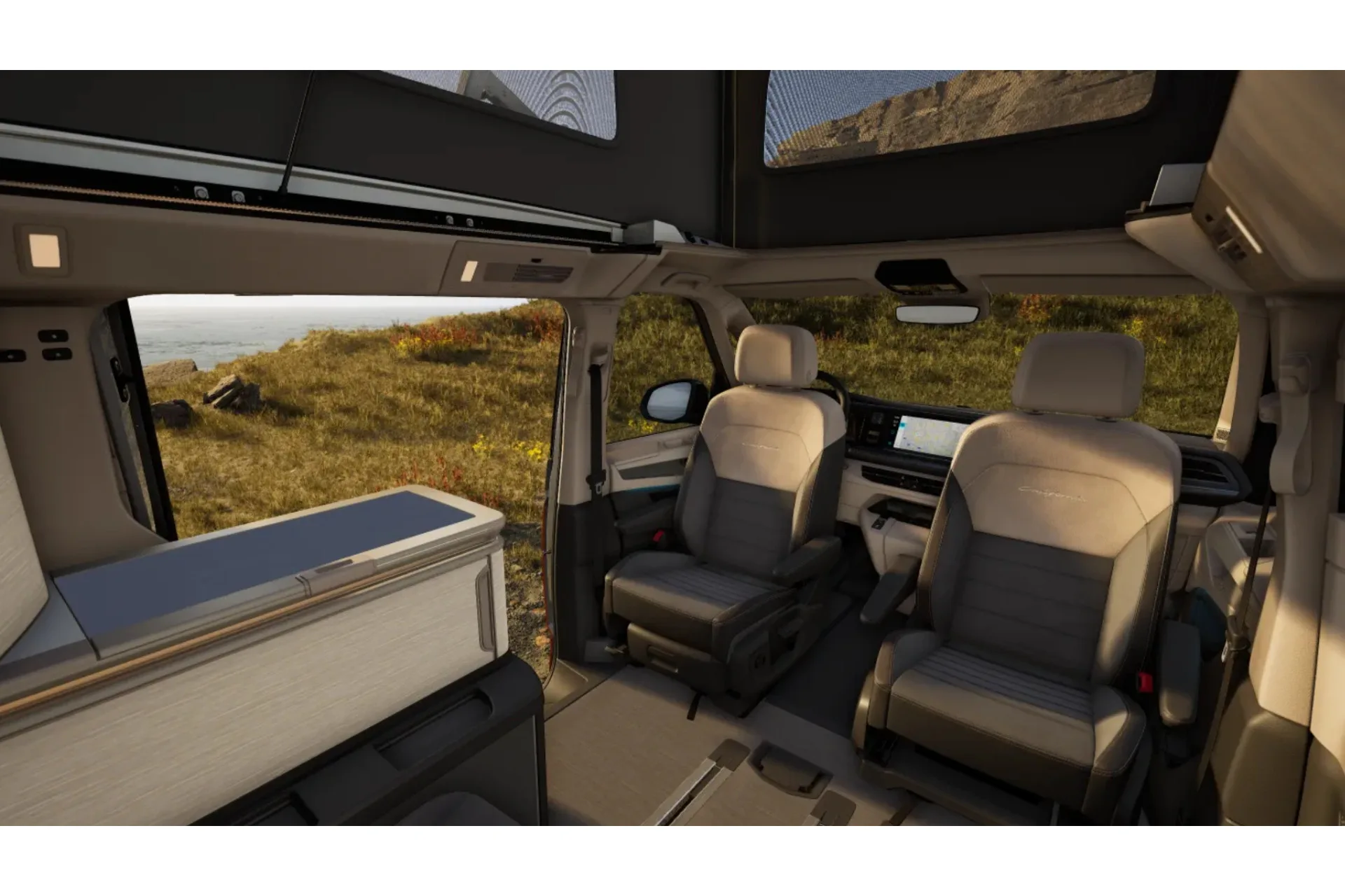 Binnen ontstaat een leefruimte die voelt als meer dan een voertuig. Licht, overzicht en comfort komen samen in een omgeving die uitnodigt om te blijven staan wanneer dat goed voelt en weer te vertrekken wanneer u daar zin in heeft.