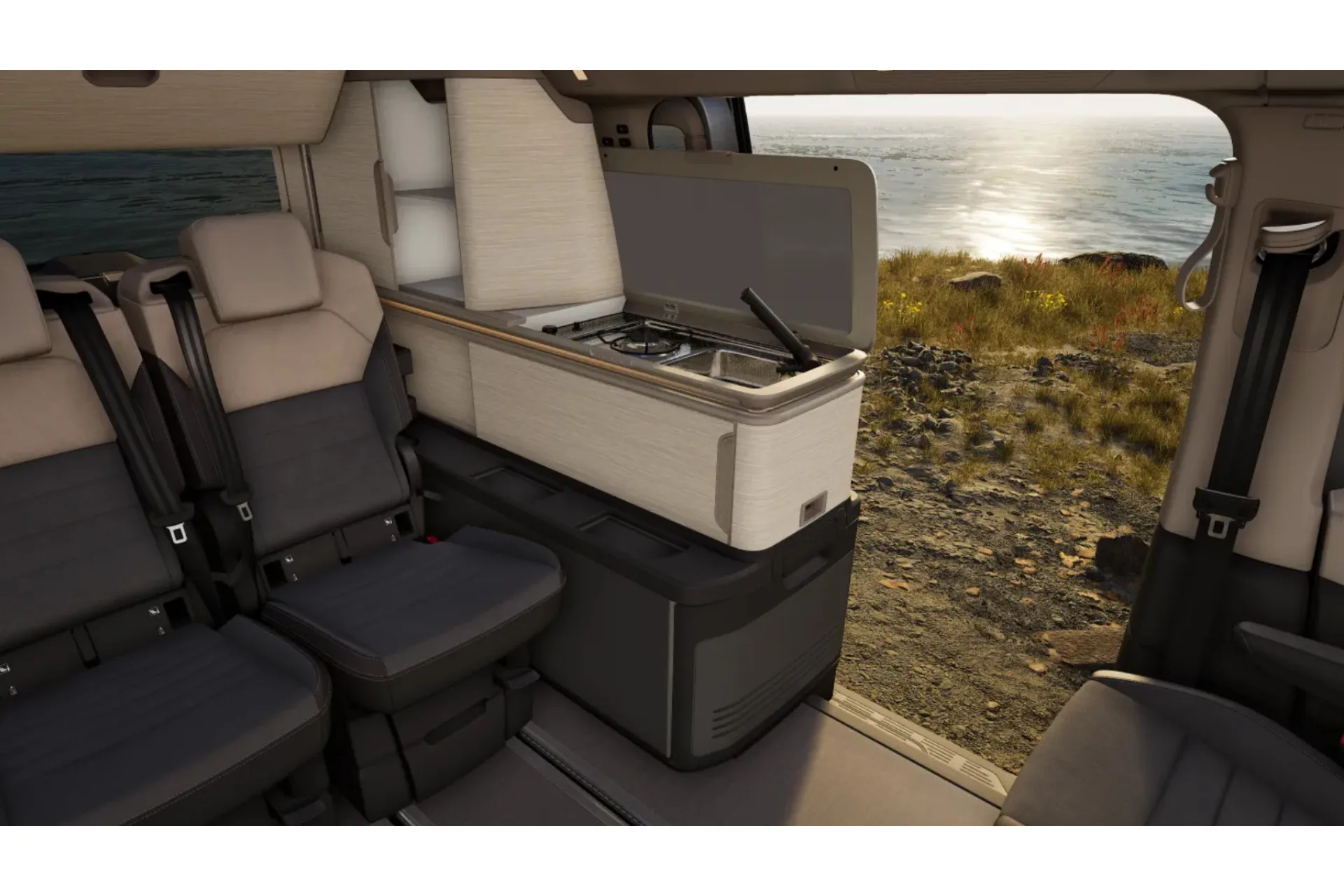 Zoals elke Ocean is ook deze uitvoering gebouwd voor reizen zonder concessies. Het automatische hefdak maakt aankomen moeiteloos: stoppen, openen en direct ruimte ervaren. Geen handmatige handelingen, geen voorbereiding, alles werkt vanzelf samen. De vaste keuken, de slimme indeling en de zelfstandige voorzieningen maken deze California geschikt voor langere reizen, waarbij u niet afhankelijk bent van wat er om u heen beschikbaar is.