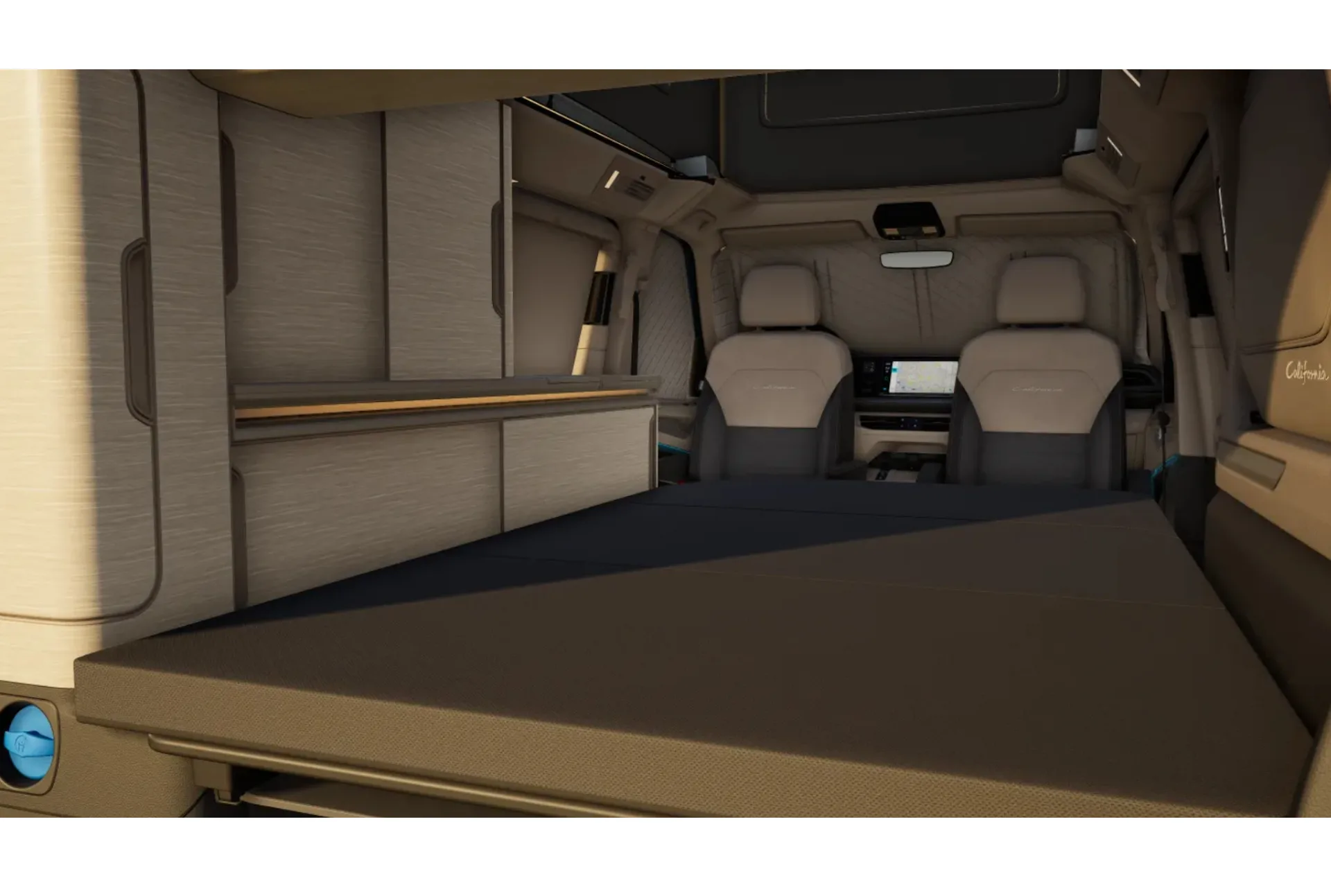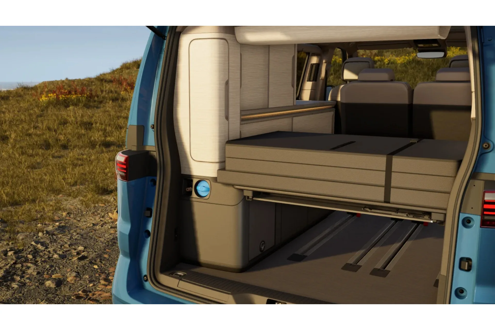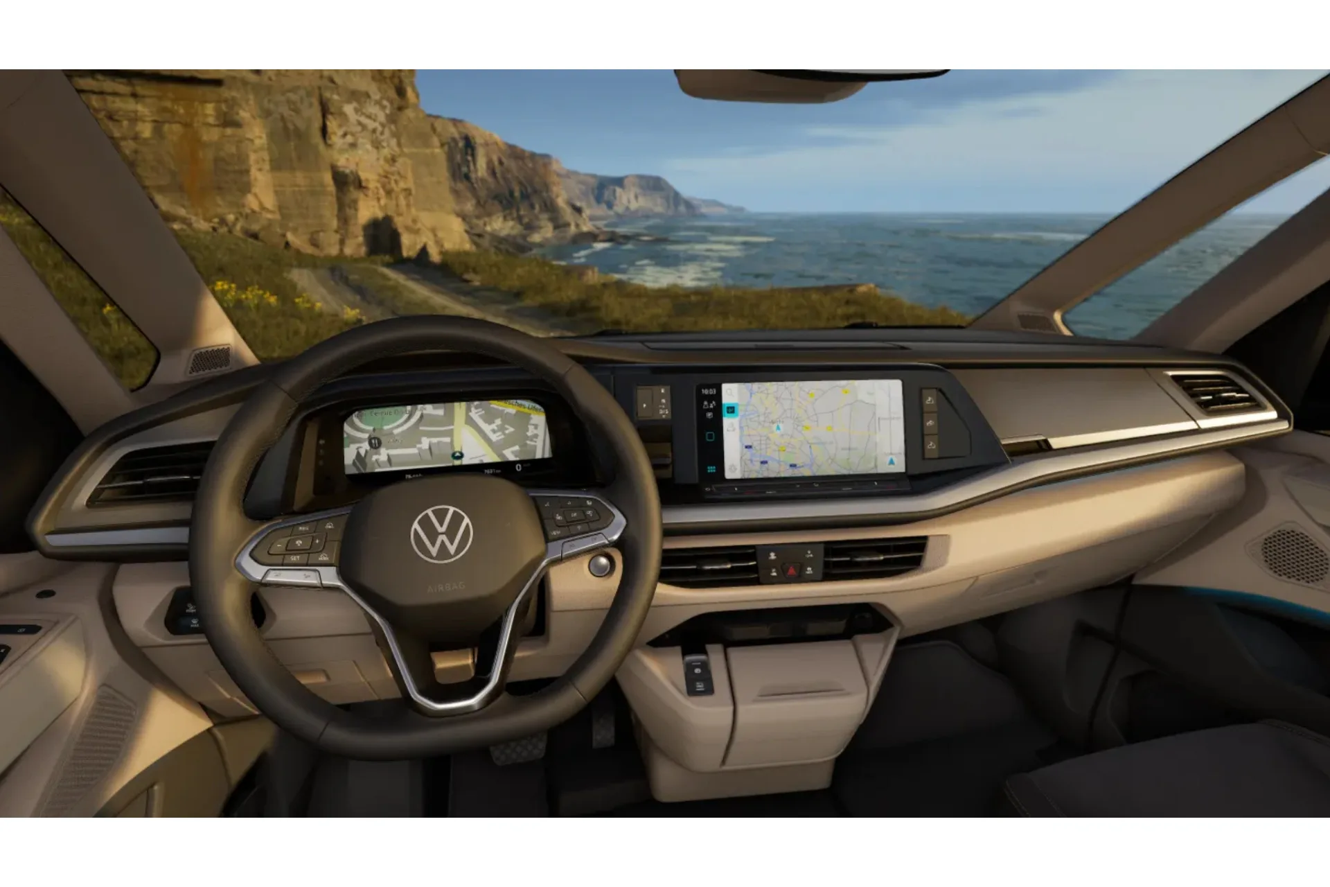 Deze Volkswagen California Ocean is gebouwd voor reizen waarbij comfort en zelfstandigheid hand in hand gaan. De diepe Florida Blue lak en het Deep Black dak geven hem een rustige, volwassen uitstraling, passend bij een uitvoering die ontworpen is om langer onderweg te zijn, zonder concessies.