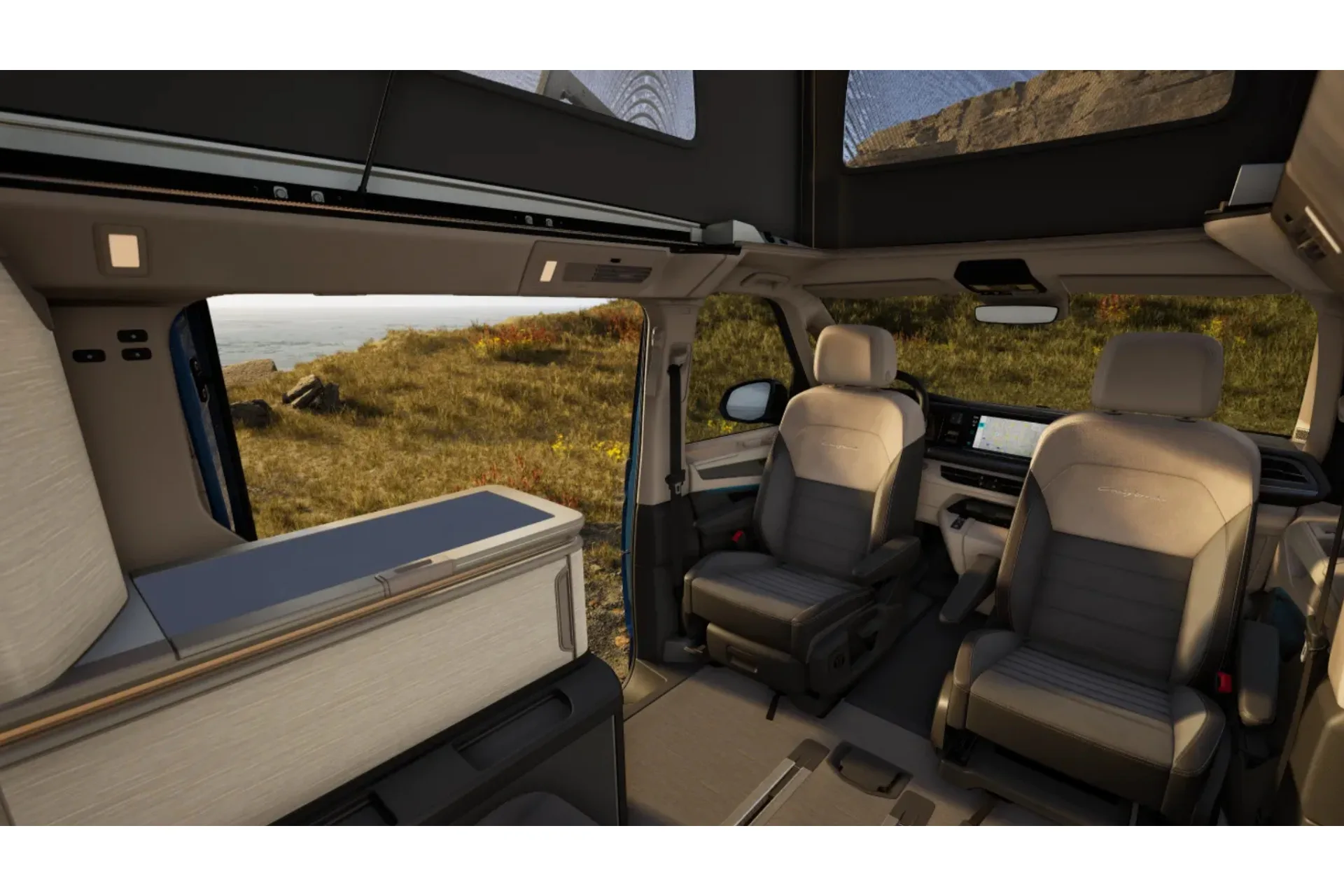 Binnen voelt hij niet als een camper, maar als een volwaardige leefruimte. Een plek waar techniek niet zichtbaar aanwezig is, maar wél voelbaar bijdraagt aan rust en gemak.