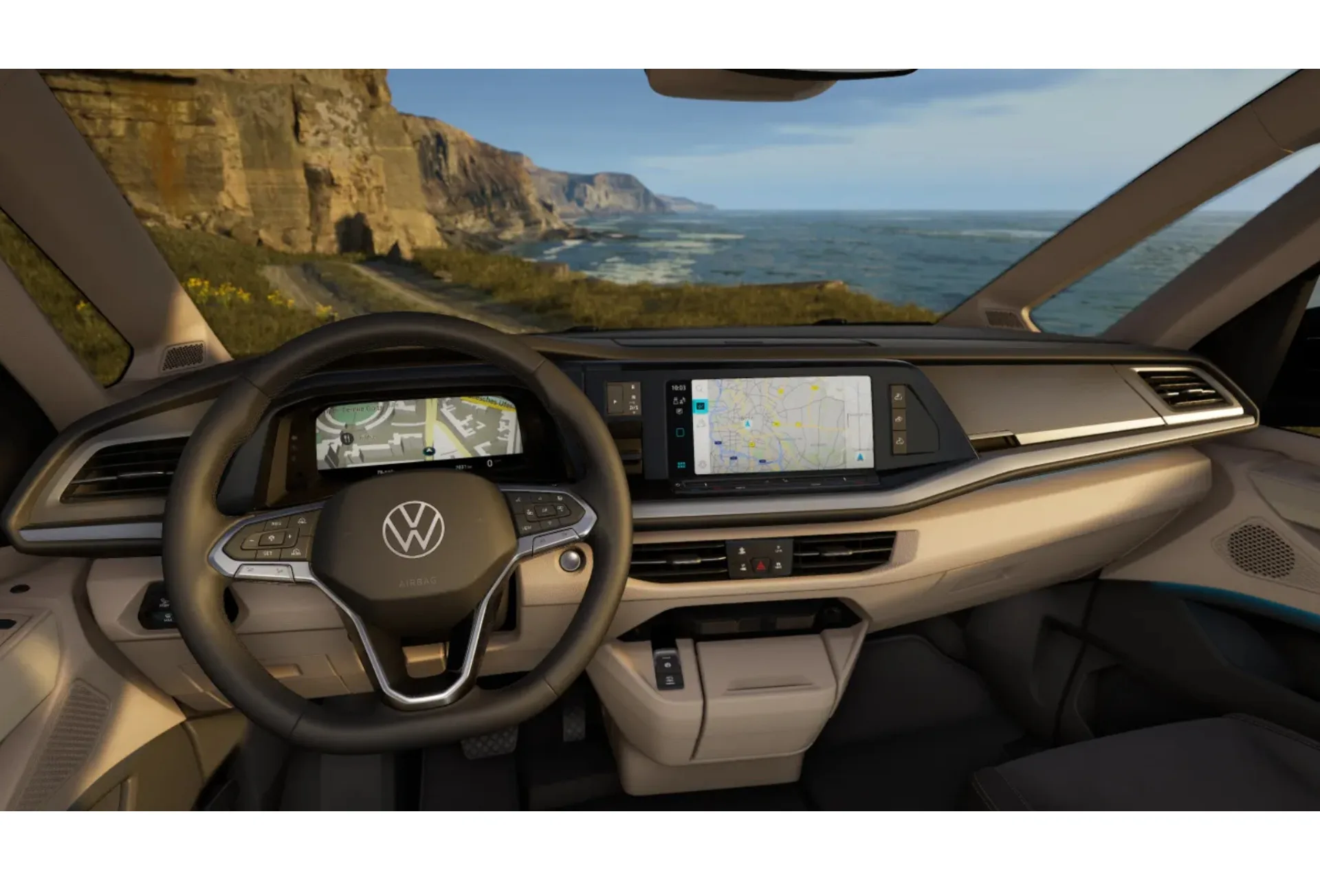Deze Volkswagen California Ocean is gebouwd voor mensen die weten wat ze doen. De Indium Grey lak in combinatie met het Deep Black dak geeft deze uitvoering een ingetogen, bijna zakelijke uitstraling. Geen franje, geen nadruk, maar een duidelijke boodschap: dit is een reisauto die is ontworpen om te presteren, dag na dag.