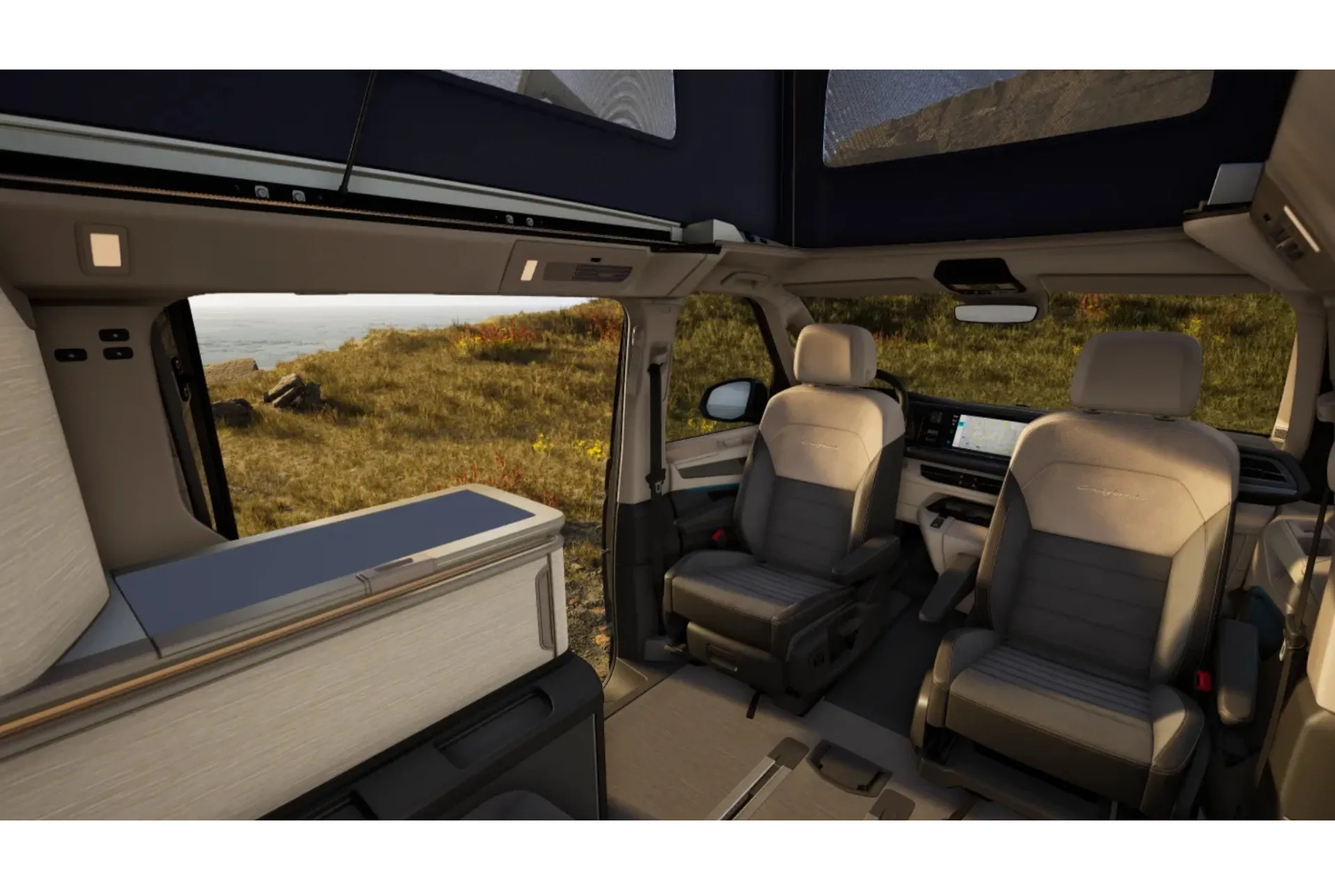Zoals het een Ocean betaamt, draait ook deze uitvoering om comfort zonder onderbrekingen. Het automatische hefdak maakt stoppen moeiteloos en voorspelbaar. Geen handelingen, geen afwegingen. Alles werkt wanneer u het nodig heeft. De vaste keuken, de doordachte indeling en de zelfstandige voorzieningen maken deze California geschikt voor langere reizen, zonder afhankelijkheid van campings of faciliteiten.