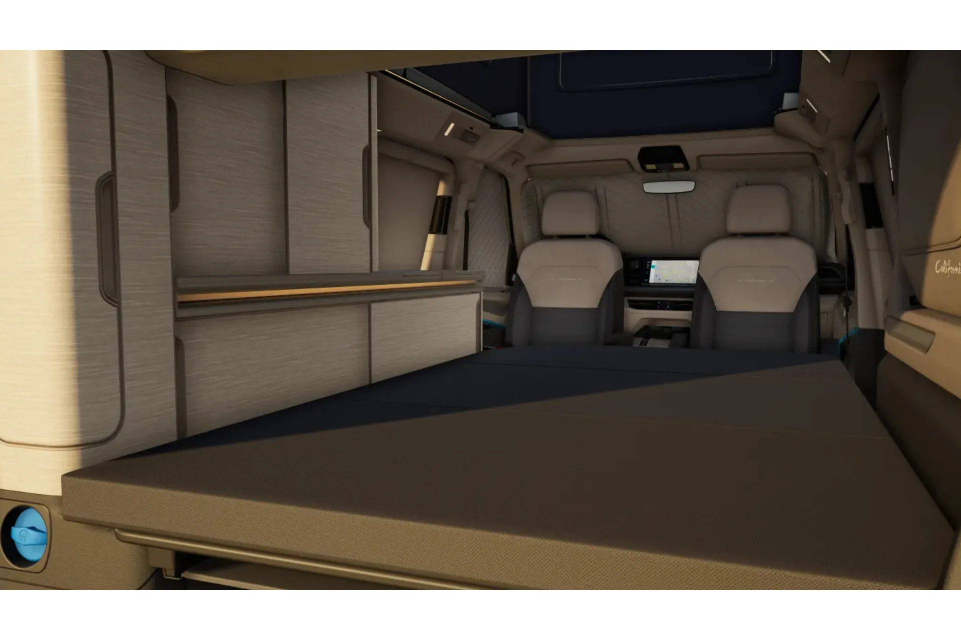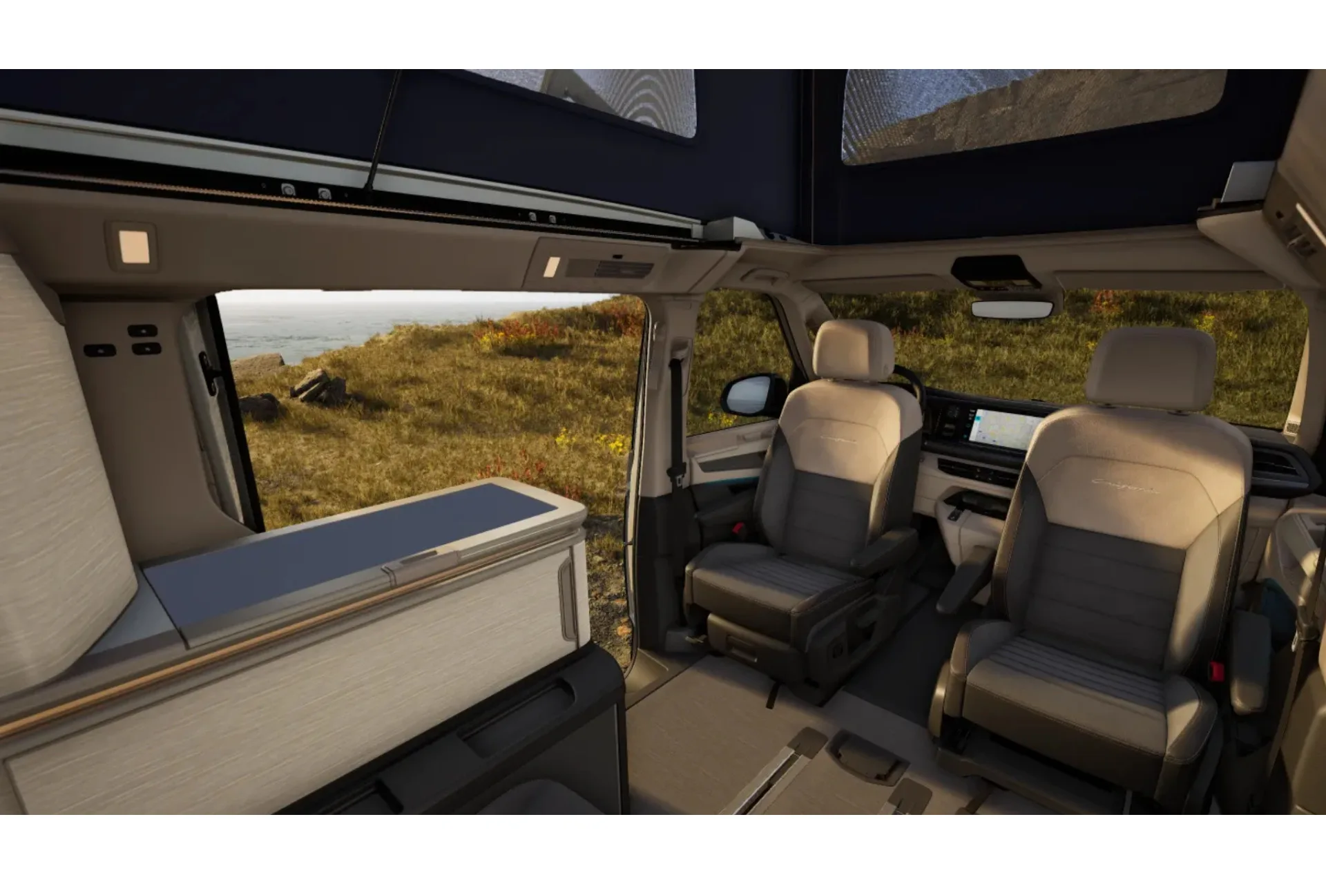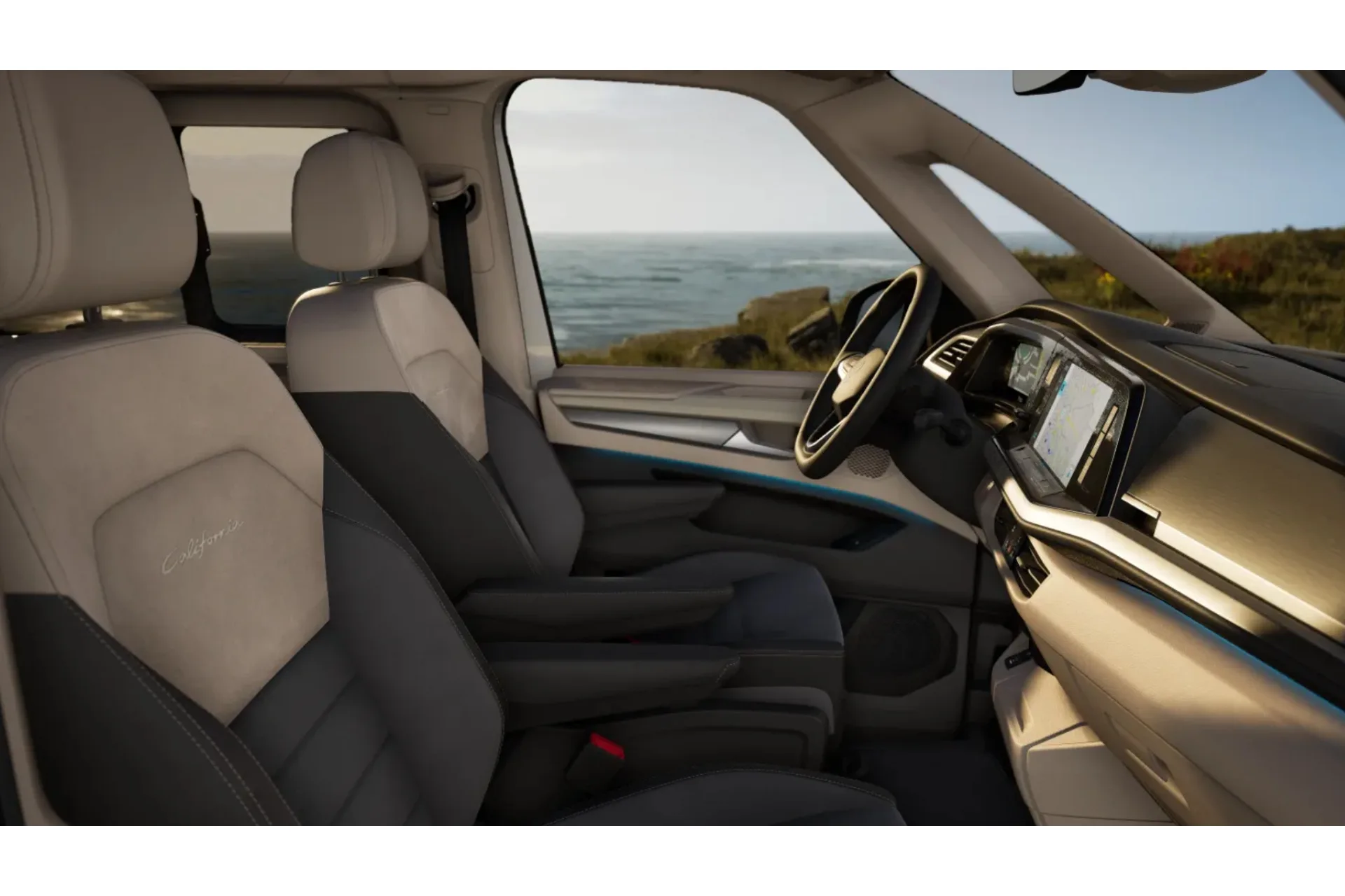 Deze Volkswagen California Ocean laat zien dat reizen ook uitgesproken mag zijn. De combinatie van Starlight Blue met Candy White zorgt voor een helder en contrastrijk uiterlijk dat direct in het oog springt, zonder zijn volwassenheid te verliezen. In combinatie met de 19-inch wielen staat deze Ocean stevig en zelfverzekerd op de weg. Dit is geen camper die wegvalt in het landschap, dit is een California die aanwezig is.