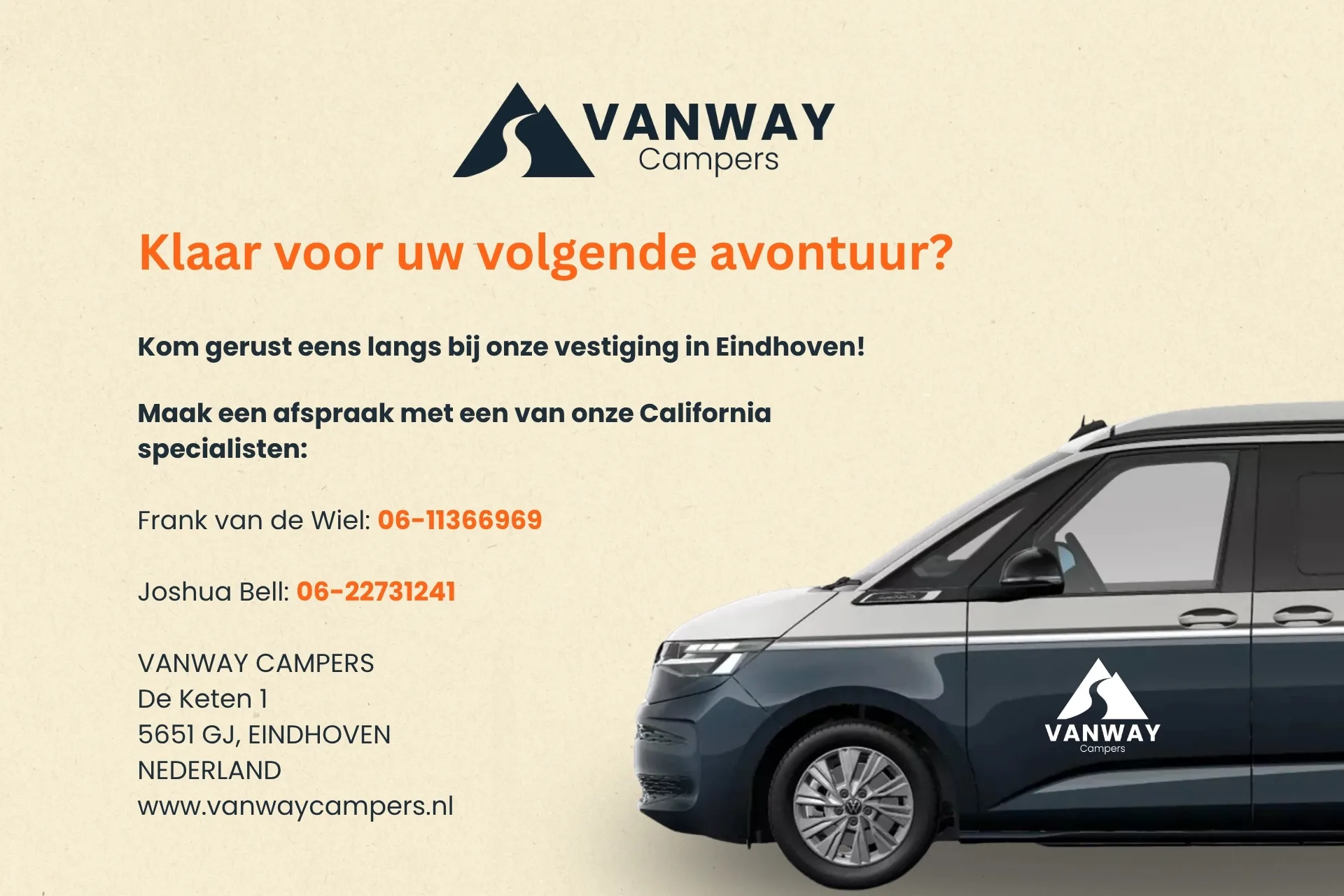 Fabrikant: VanWay Campers De Keten 1 5651GJ EINDHOVEN, NL 0622731241 http://www.vanwaycampers.nl info@vanwaycampers.nl