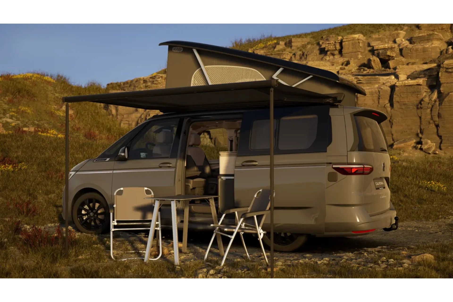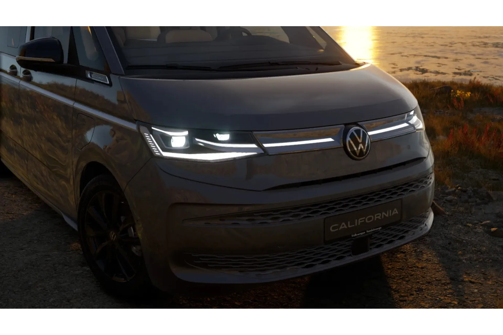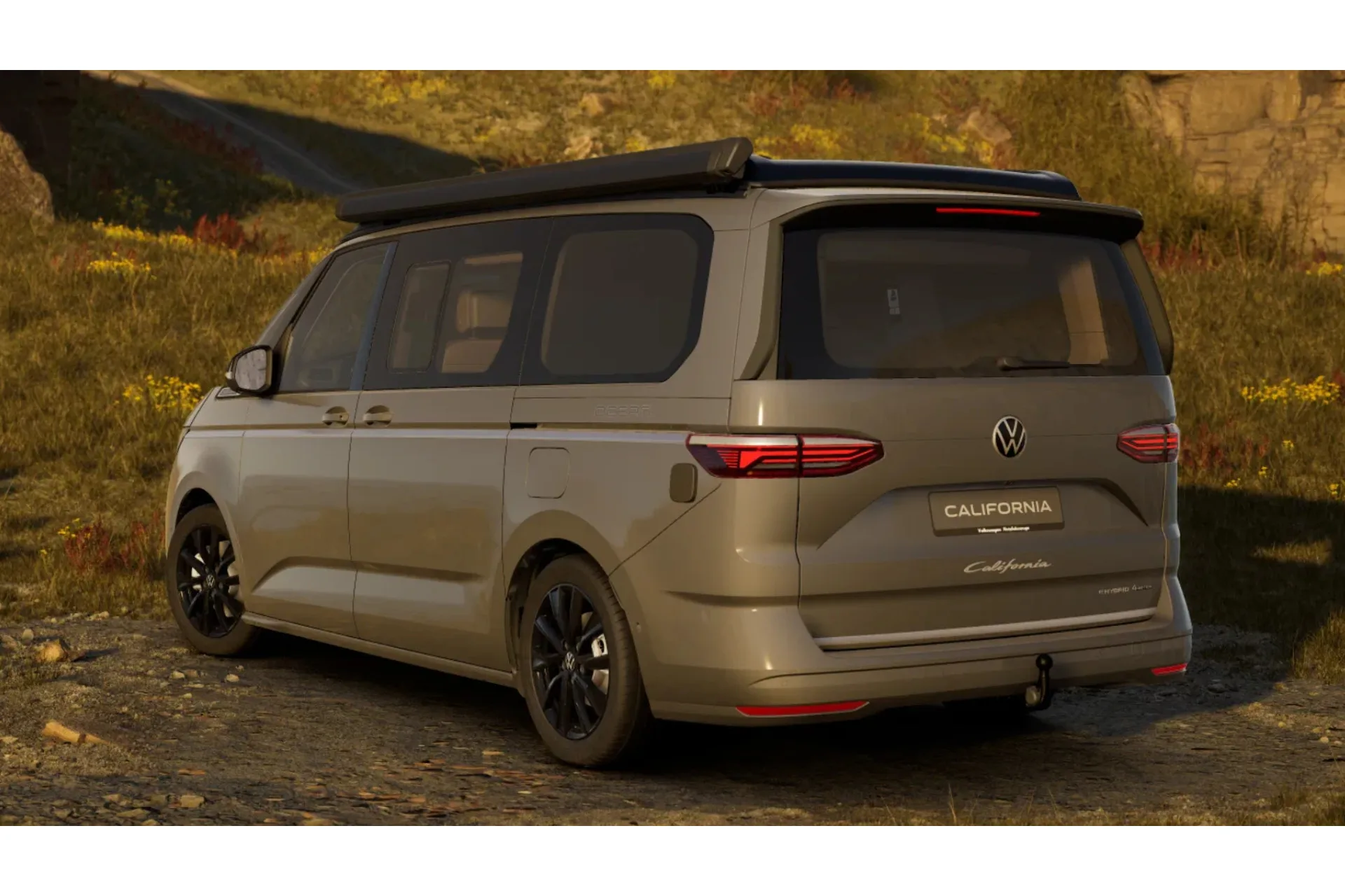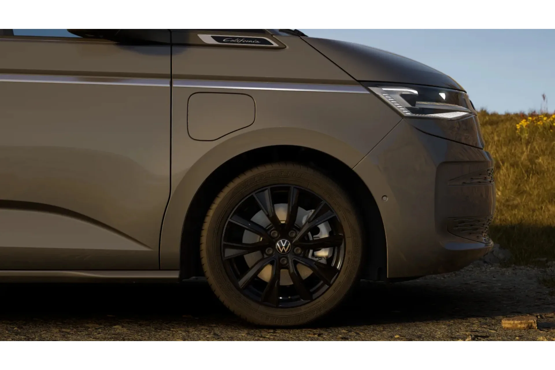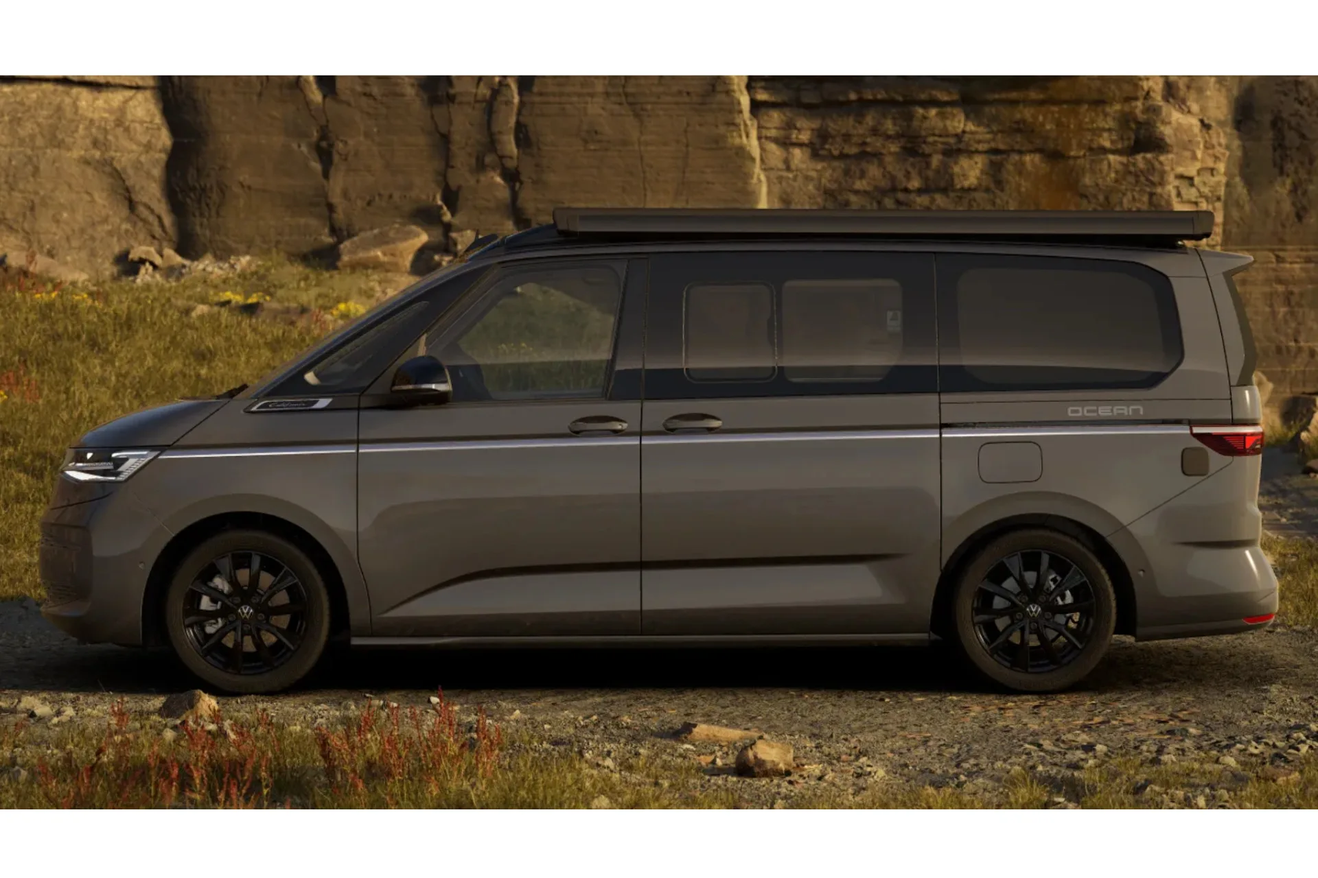 Deze Volkswagen California Ocean laat een andere kant van comfort zien. De matte, stoere uitstraling van Pure Grey in combinatie met het Deep Black dak en de zwarte velgen geeft deze uitvoering een krachtig en doelgericht karakter. Dit is geen Ocean die afstand bewaart, maar een Ocean die stevig in zijn schoenen staat.